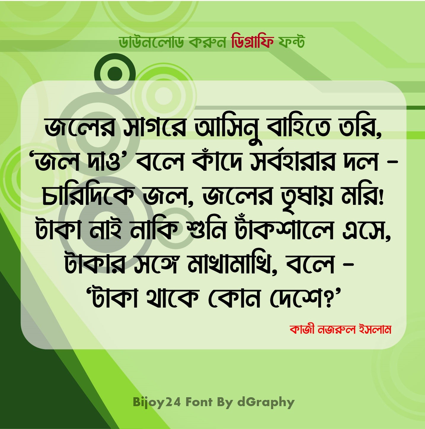 বৈষম্যবিরোধী ছাত্র আন্দোলনের প্রথম শহীদ আবু সাঈদ এবং এই আন্দোলনের সকল শহীদদের প্রতি গভীর শ্রদ্ধা জানিয়ে dGraphy প্রকাশ করেছে ফ্রি বাংলা ফন্ট "বিজয়২৪"।