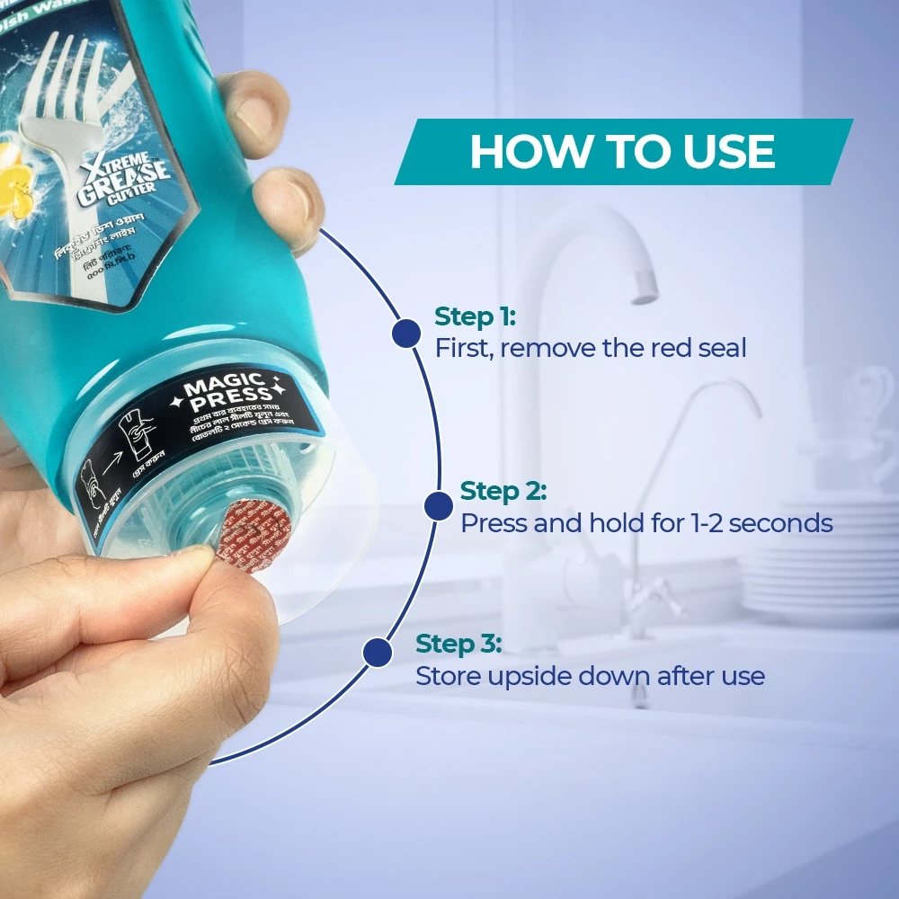 Sunbit Refreshing Lime Magic Press Liquid Dishwash will revolutionize the way you clean dishes. With innovative packaging and an advanced formulation, it effortlessly tackles stubborn grease, leaving your dishes sparkling with a diamond-like shine. Despite its gentle touch on your hands, Sunbit is a formidable adversary against tough grease.